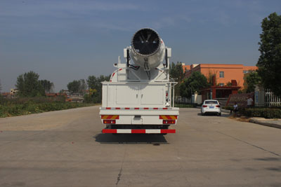 噴霧抑塵車隨車裝配大功率柴油機、三相交流同步發電機、三相異步電動機、三缸活塞泵,并安裝風機風炮,為農藥噴灑提供專一動力來源和專用設備。灑水泵可抽水排水,安裝濾網,帶消防接口,可通過消防栓進水,帶自流閥,隨車選裝20米噴藥綠化卷盤
